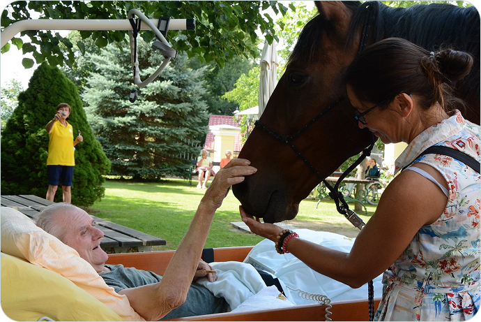 Přítomnost tak velkého, a přitom jemného tvora, dokáže spustit vlnu emocí, začít pohyb i rozhovor tam, kde bylo dlouho ticho. Pohnout rukou, která dlouho neměla sílu.